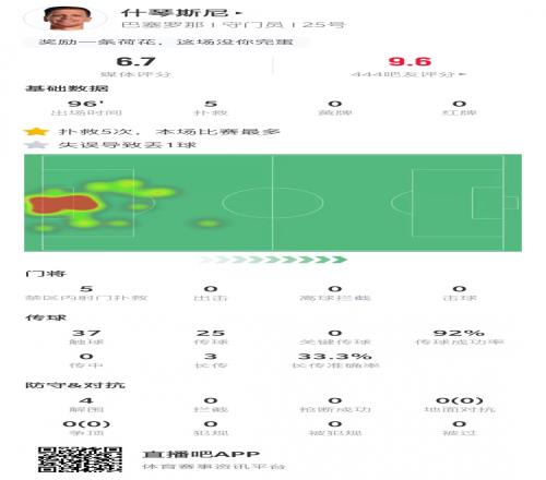 什琴斯尼本场比赛数据: